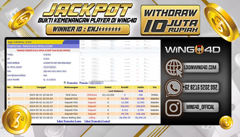 Bukti berikut merupakan salah satu komitmen WING4D untuk melayani seluruh member setia WING4D secara sungguh-sungguh, Dengan membayar Lunas seluruh kemenangan member secara Cepat, Tepat dan Akurat.