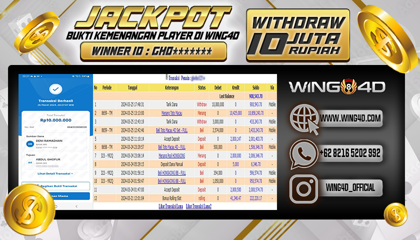 Bukti berikut merupakan salah satu komitmen WING4D untuk melayani seluruh member setia WING4D secara sungguh-sungguh, Dengan membayar Lunas seluruh kemenangan member secara Cepat, Tepat dan Akurat.