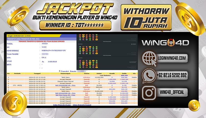 Bukti berikut merupakan salah satu komitmen WING4D untuk melayani seluruh member setia WING4D secara sungguh-sungguh, Dengan membayar Lunas seluruh kemenangan member secara Cepat, Tepat dan Akurat.