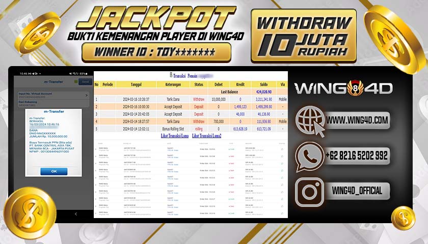 Bukti berikut merupakan salah satu komitmen WING4D untuk melayani seluruh member setia WING4D secara sungguh-sungguh, Dengan membayar Lunas seluruh kemenangan member secara Cepat, Tepat dan Akurat.
