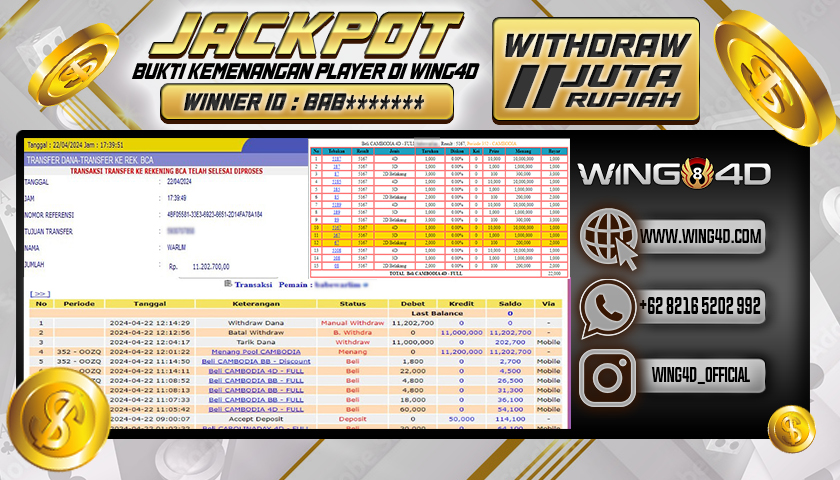 Bukti berikut merupakan salah satu komitmen WING4D untuk melayani seluruh member setia WING4D secara sungguh-sungguh, Dengan membayar Lunas seluruh kemenangan member secara Cepat, Tepat dan Akurat.