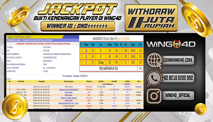 Bukti berikut merupakan salah satu komitmen WING4D untuk melayani seluruh member setia WING4D secara sungguh-sungguh, Dengan membayar Lunas seluruh kemenangan member secara Cepat, Tepat dan Akurat.