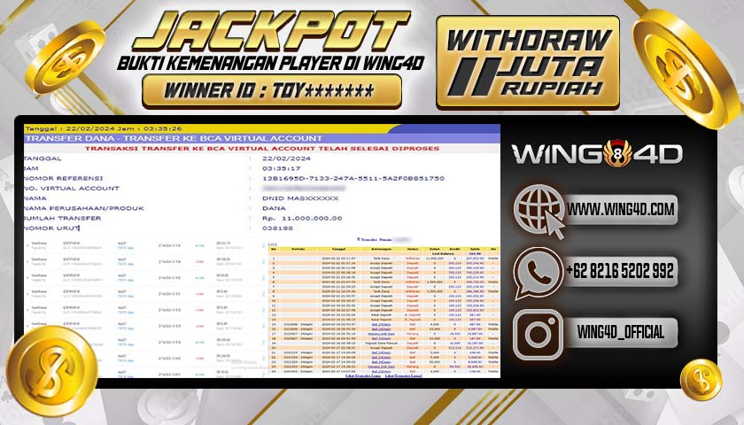Bukti berikut merupakan salah satu komitmen WING4D untuk melayani seluruh member setia WING4D secara sungguh-sungguh, Dengan membayar Lunas seluruh kemenangan member secara Cepat, Tepat dan Akurat.