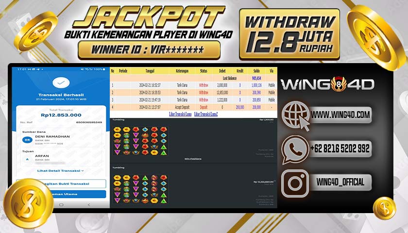 Selamat kepada Bpk.ARFAN yang akhirnya mendapatkan jackpot besar dalam Permainan : Slot Mania Princess di situs bandar togel terpercaya WING4D. Dalam WITHDRAW sebesar Rp. 12,853,000,- di bayar dengan lunas dan prosesnya di lakukan secara cepat oleh pihak WING4D. Dengan bukti yang kami berikan sudah seharusnya menjadi hal yang bisa anda semua bayangkan betapa aman dan nyamannya pelayanan yang di berikan WING4Dkepada para membernya. Tentunya jika anda masih bingung mencari situs bandar togel online terpercaya, anda bisa segera melakukan pendaftaran dan bermain di situs togel online terpercaya dan terbukti membayar semua kemenangan jumlah berapapun seperti situs WING4D!.