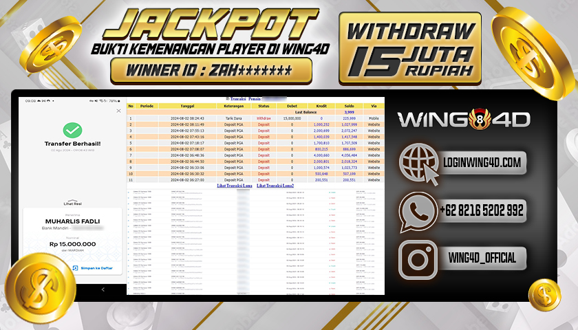 Bukti berikut merupakan salah satu komitmen WING4D untuk melayani seluruh member setia WING4D secara sungguh-sungguh, Dengan membayar Lunas seluruh kemenangan member secara Cepat, Tepat dan Akurat.