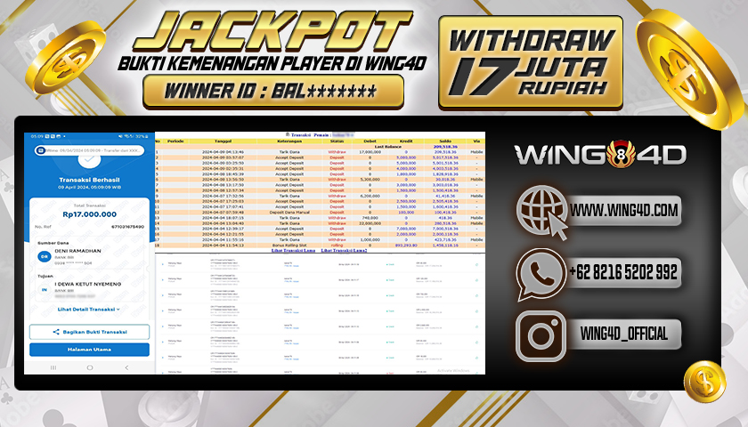 Bukti berikut merupakan salah satu komitmen WING4D untuk melayani seluruh member setia WING4D secara sungguh-sungguh, Dengan membayar Lunas seluruh kemenangan member secara Cepat, Tepat dan Akurat.