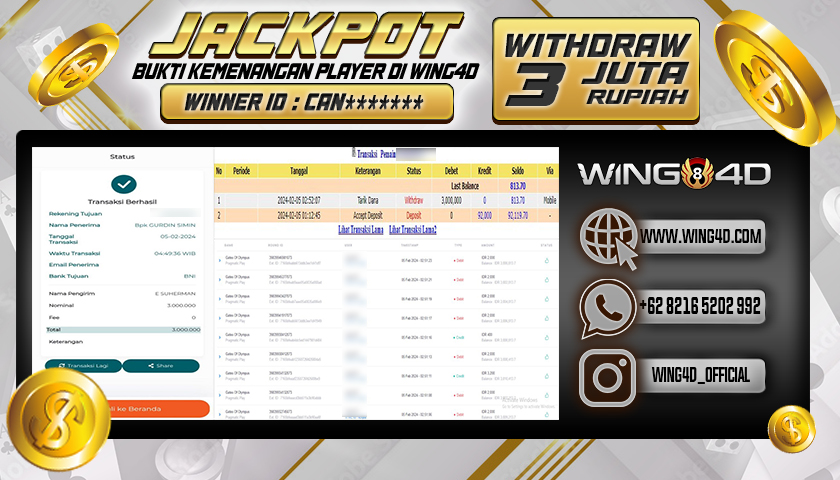 Bukti berikut merupakan salah satu komitmen WING4D untuk melayani seluruh member setia WING4D secara sungguh-sungguh, Dengan membayar Lunas seluruh kemenangan member secara Cepat, Tepat dan Akurat.
