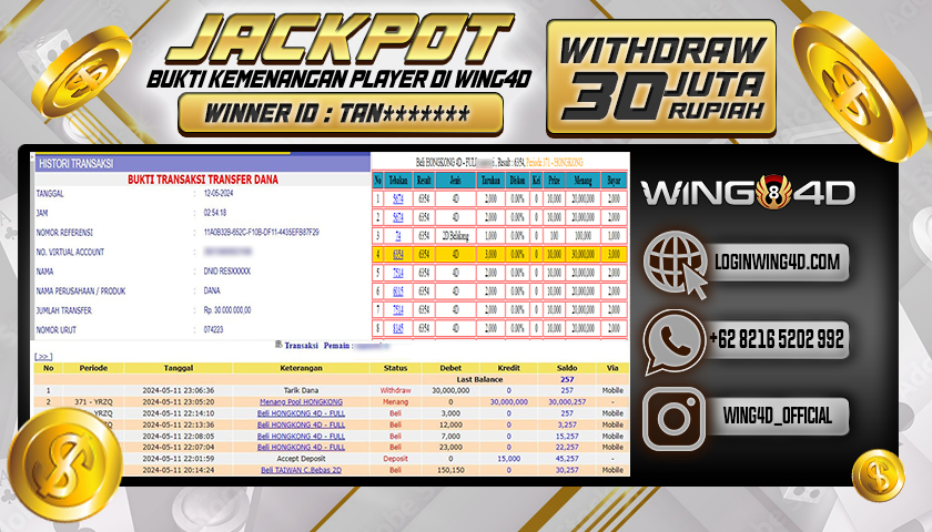 Bukti berikut merupakan salah satu komitmen WING4D untuk melayani seluruh member setia WING4D secara sungguh-sungguh, Dengan membayar Lunas seluruh kemenangan member secara Cepat, Tepat dan Akurat.