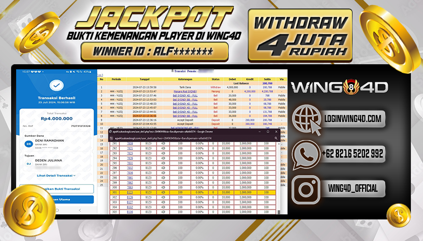 Bukti berikut merupakan salah satu komitmen WING4D untuk melayani seluruh member setia WING4D secara sungguh-sungguh, Dengan membayar Lunas seluruh kemenangan member secara Cepat, Tepat dan Akurat.