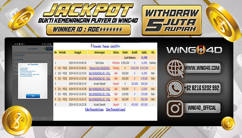 Bukti berikut merupakan salah satu komitmen WING4D untuk melayani seluruh member setia WING4D secara sungguh-sungguh, Dengan membayar Lunas seluruh kemenangan member secara Cepat, Tepat dan Akurat.