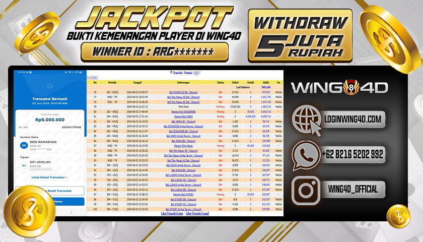 Bukti berikut merupakan salah satu komitmen WING4D untuk melayani seluruh member setia WING4D secara sungguh-sungguh, Dengan membayar Lunas seluruh kemenangan member secara Cepat, Tepat dan Akurat.