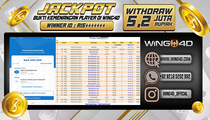 Bukti berikut merupakan salah satu komitmen WING4D untuk melayani seluruh member setia WING4D secara sungguh-sungguh, Dengan membayar Lunas seluruh kemenangan member secara Cepat, Tepat dan Akurat.