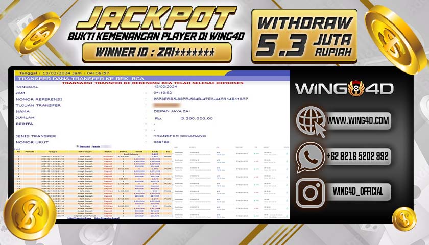 Bukti berikut merupakan salah satu komitmen WING4D untuk melayani seluruh member setia WING4D secara sungguh-sungguh, Dengan membayar Lunas seluruh kemenangan member secara Cepat, Tepat dan Akurat.