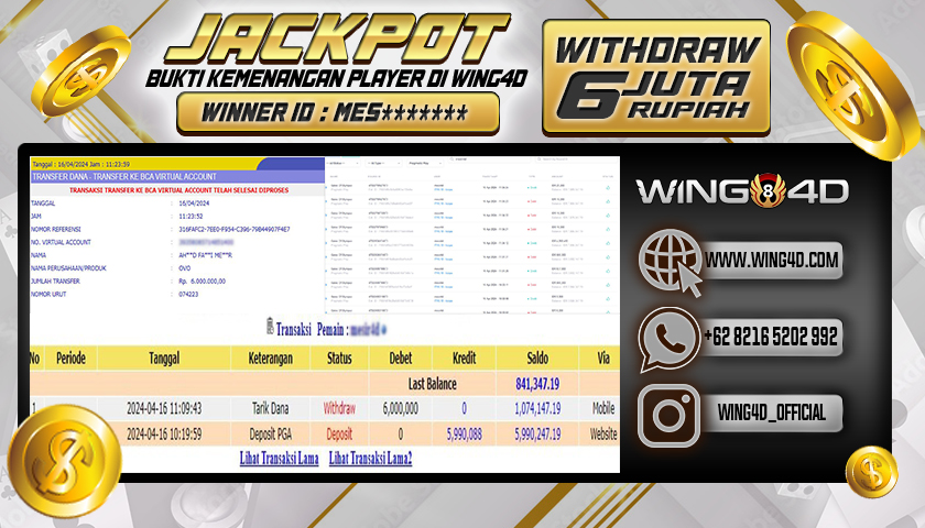 Bukti berikut merupakan salah satu komitmen WING4D untuk melayani seluruh member setia WING4D secara sungguh-sungguh, Dengan membayar Lunas seluruh kemenangan member secara Cepat, Tepat dan Akurat.