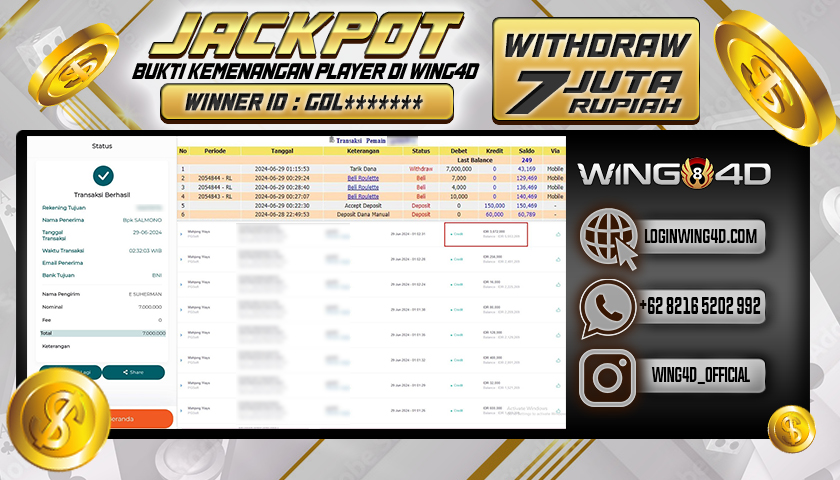 Bukti berikut merupakan salah satu komitmen WING4D untuk melayani seluruh member setia WING4D secara sungguh-sungguh, Dengan membayar Lunas seluruh kemenangan member secara Cepat, Tepat dan Akurat.