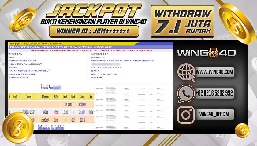 Bukti berikut merupakan salah satu komitmen WING4D untuk melayani seluruh member setia WING4D secara sungguh-sungguh, Dengan membayar Lunas seluruh kemenangan member secara Cepat, Tepat dan Akurat.