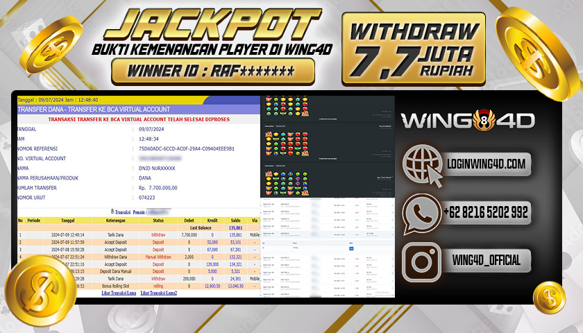 Bukti berikut merupakan salah satu komitmen WING4D untuk melayani seluruh member setia WING4D secara sungguh-sungguh, Dengan membayar Lunas seluruh kemenangan member secara Cepat, Tepat dan Akurat.