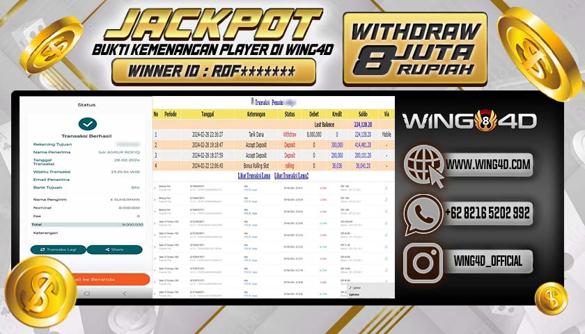 Bukti berikut merupakan salah satu komitmen WING4D untuk melayani seluruh member setia WING4D secara sungguh-sungguh, Dengan membayar Lunas seluruh kemenangan member secara Cepat, Tepat dan Akurat.
