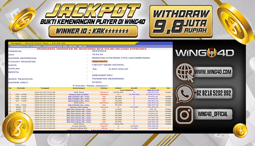 Bukti berikut merupakan salah satu komitmen WING4D untuk melayani seluruh member setia WING4D secara sungguh-sungguh, Dengan membayar Lunas seluruh kemenangan member secara Cepat, Tepat dan Akurat.